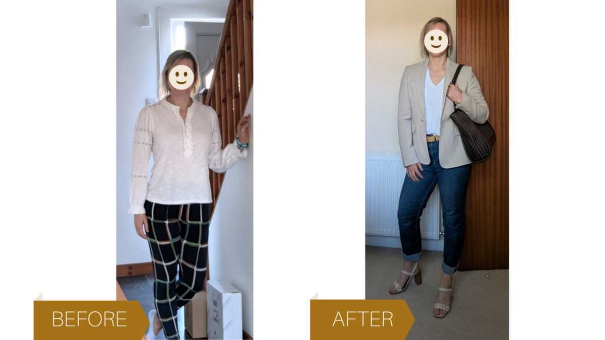 My style before the course wasn’t bad , just a bit dull and some things just didn’t work for me. After the course I now know how to make that outfit work well and if my outfit isn’t working l know why and what to do about it. It will save you a fortune as once you have your colour / shape and personal style recipe in your head you can’t bring yourself to buy anything that doesn’t work for you.